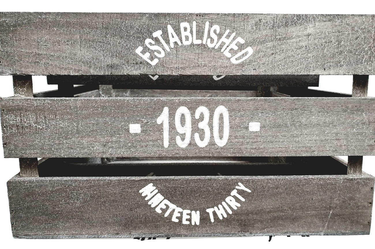 Dekoratives Kisten Set aus Holz mit "1930" Schriftzug.