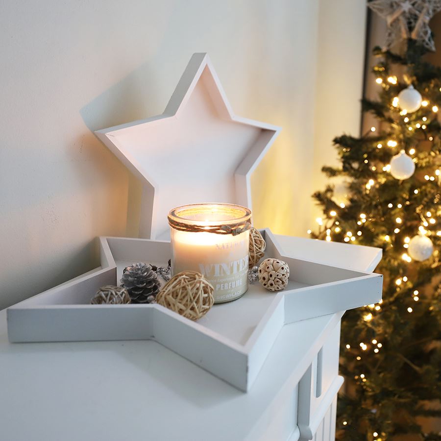 Schönes sternförmiges Dekotablett-Set das als Unterlage für winterliche oder weihnachtliche Dekorationen dienen kann. Der spezielle Used-Look hebt Weihnachtskugeln, Kerzen oder auch andere weihnachtliche und winterliche Deko besonders hervor.
