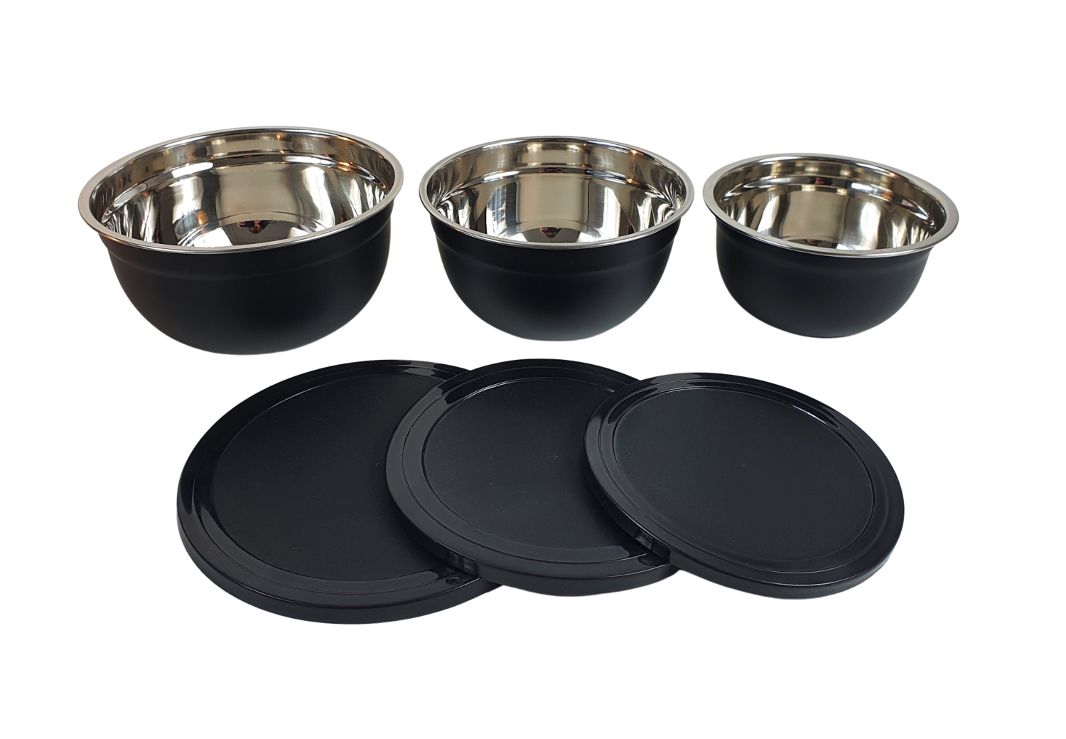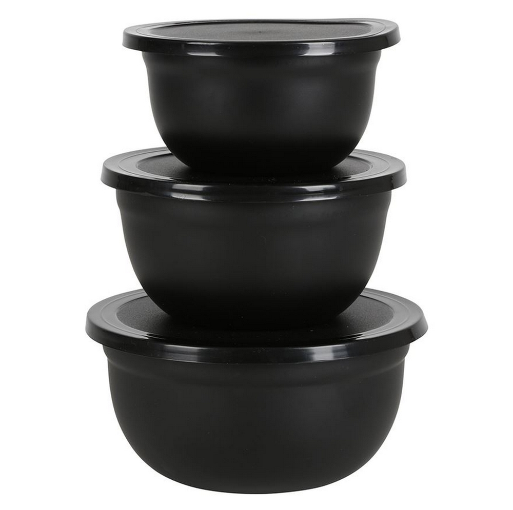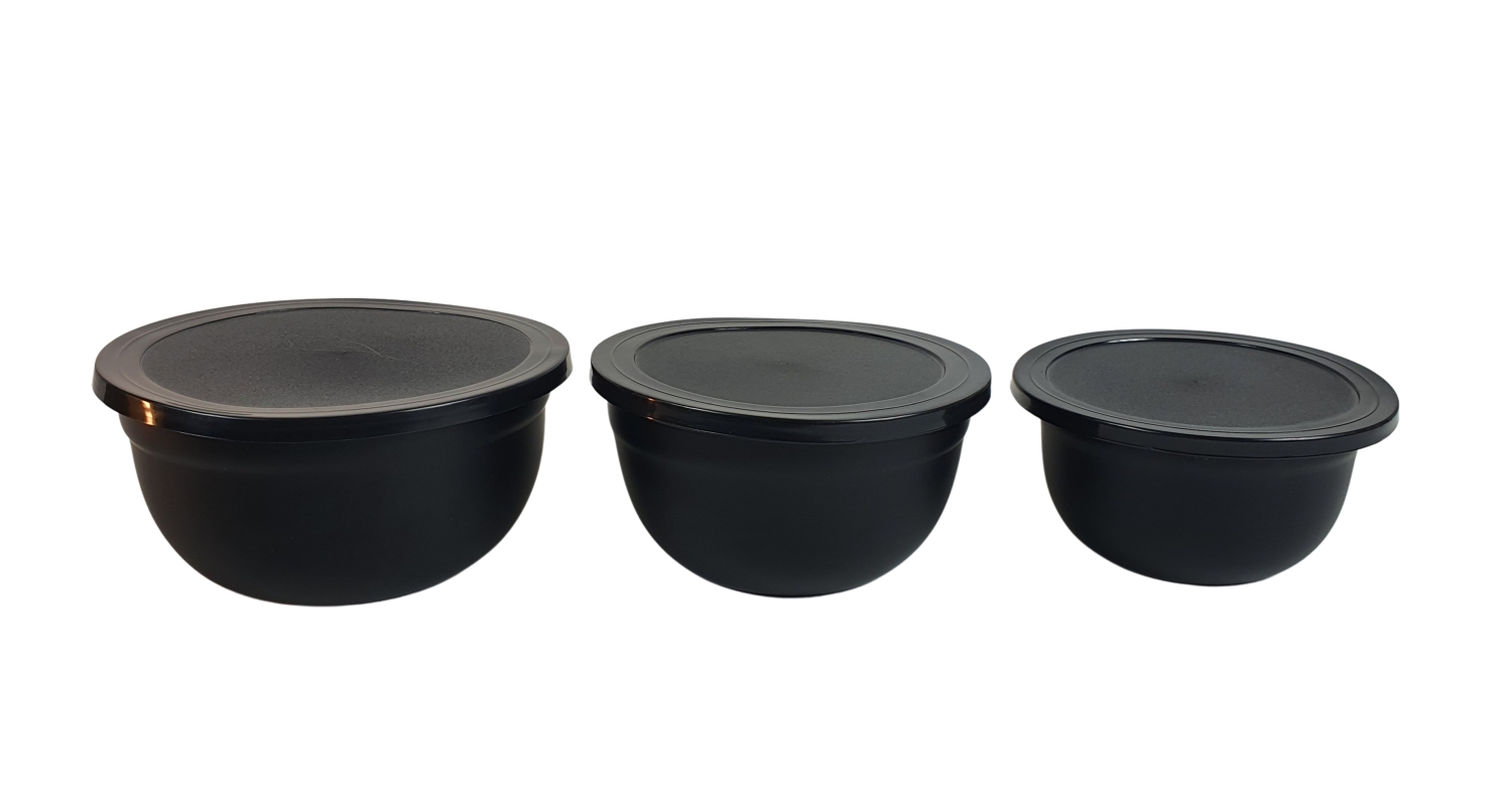 Preview: 3tlg. Edelstahl Schüssel Set mit Deckel schwarz