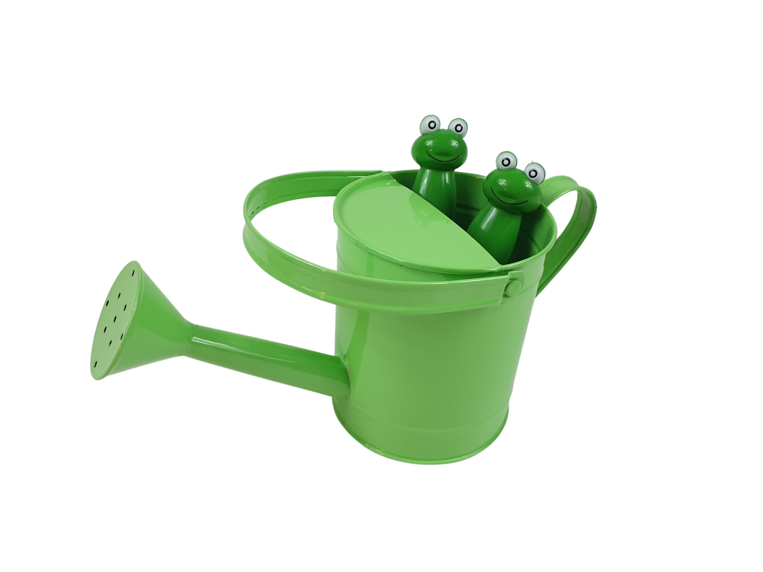 Kinder-Gießkannen-Set "Frosch" 3-teilig Eröffnen Sie Ihrem Kind spielerisch die Welt in Ihrem Garten! Mit dem sehr niedlichen Kinder-Gartenset, bestehend aus einer Gießkanne mit Henkel und zwei Gartenwerkzeugen mit Frosch-Griffen, können die kleinen Gärtner fleißig umgraben, einpflanzen und bewässern.