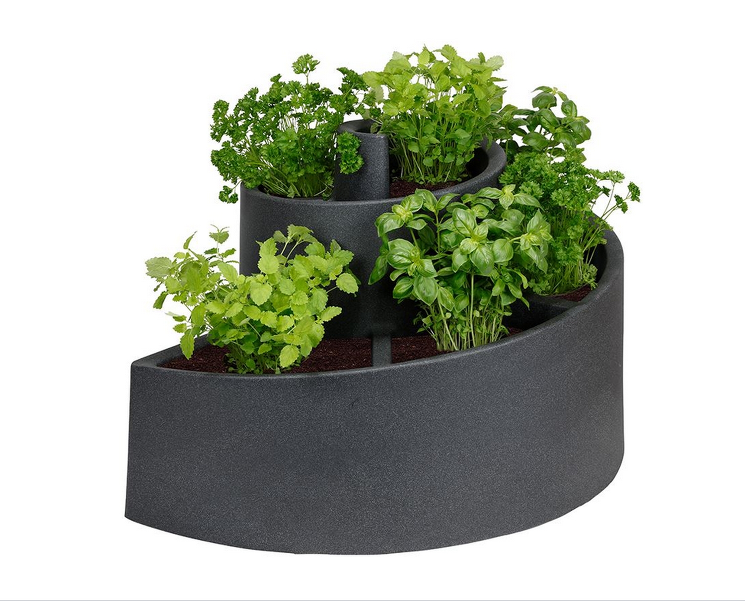 Großer "Schneckentopf" aus stabilen wetterfestem Kunststoff, bestens geeignet zur Bepflanzung mit verschiendenen Kräutern oder Blumen. Ein echter Blickfang.