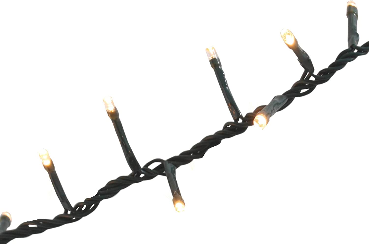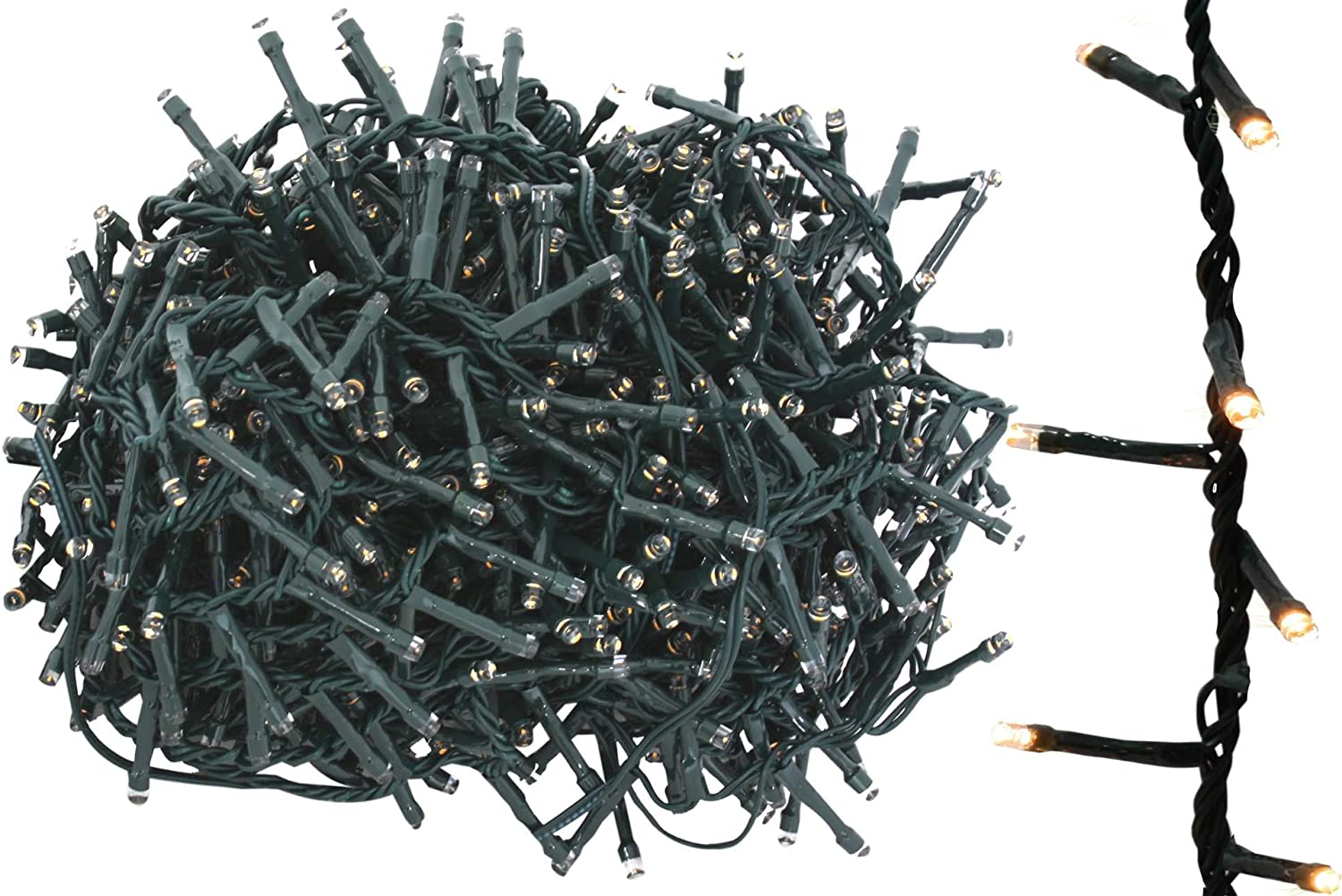 Die 800 LED's mit einer Gesamtlänge von 19 Metern wurden auf einem belastbaren dunkelgrünen Kabel mit nur einem Abstand von jeweils 2 cm plaziert und verbunden. Die Leuchtfarbe der LED's ist warmweiss und erzeugt sehr leicht eine festliche Atmosphäre. Diese Lichterkette können Sie im Innen- und Außenbereich anbringen. Lassen sie Ihrer Phantasie freien Lauf und schmücken Sie Ihren Tannenbaum, ihr Haus oder den Balkon, den Garten oder das Partyzelt im Sommer, wie im Winter. Den Gestaltungsmöglichkeiten sind keine Grenzen gesetzt. Diese Lichterkette ist mit einem Timer ausgestattet. Wenn Sie die Taste auf dem Schaltkasten drücken, leuchtet die Kette auf und sie können den gewünschten Lichteffekt einstellen. Geeignet für einen Weihnachtsbaum von 240 cm.