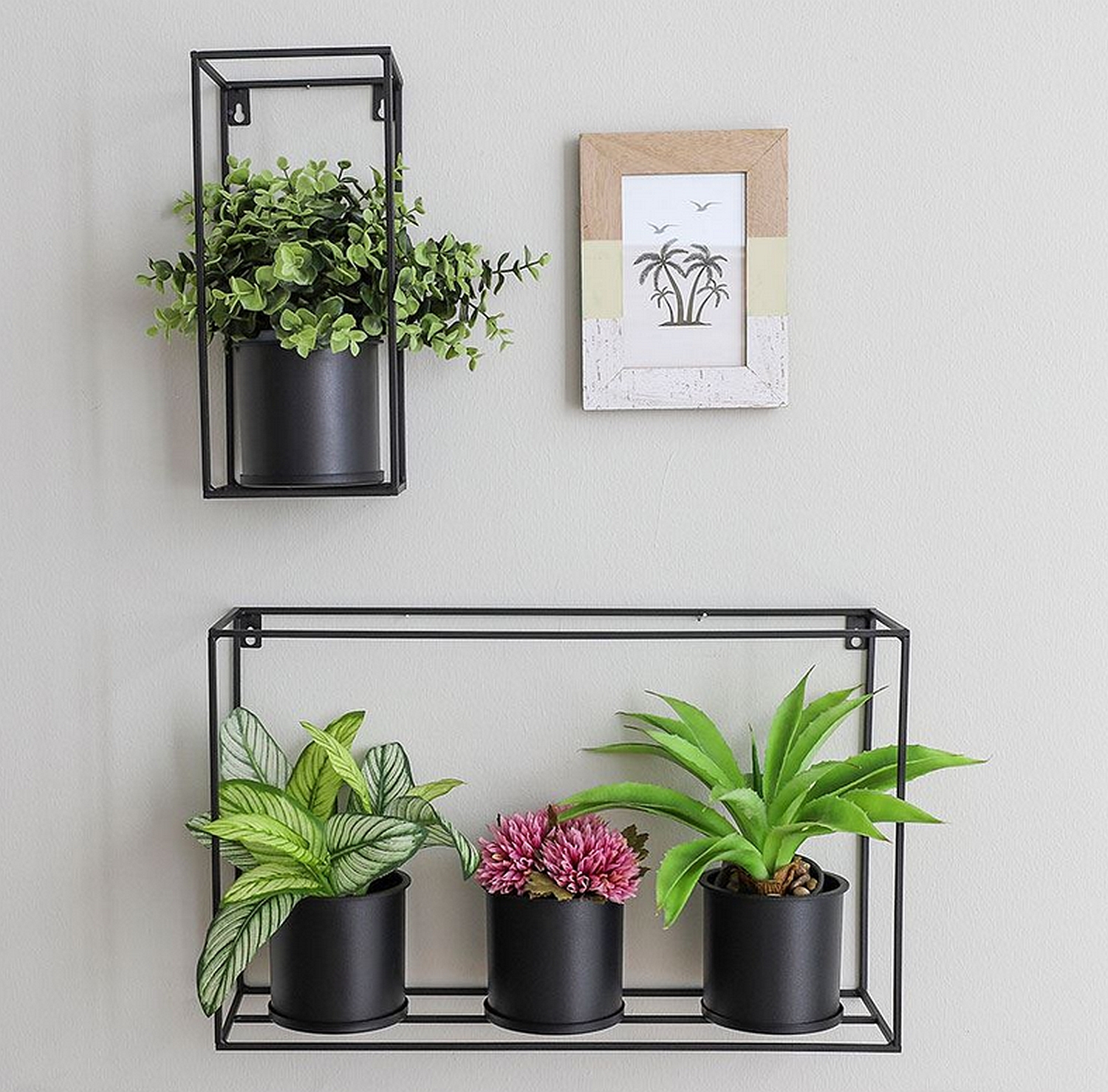 Dieses moderne Blumenregal aus Metall verleiht Ihrem Zuhause das gewisse Etwas und sorgt bepflanzt für ein besonderes Highlight. Die Kunststofftöpfe können von Ihnen beliebig bepflanzt werden, z.B. mit Kräutern für die Küche oder mit hübschen Blumen. (ohne Pflanzen)