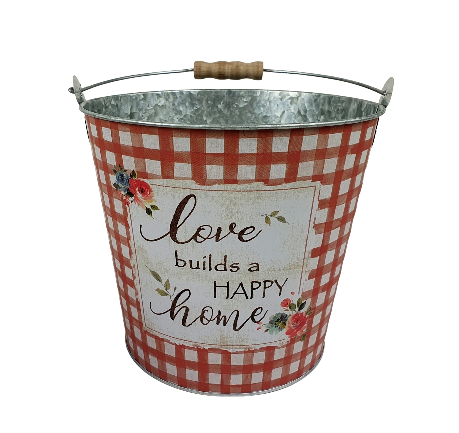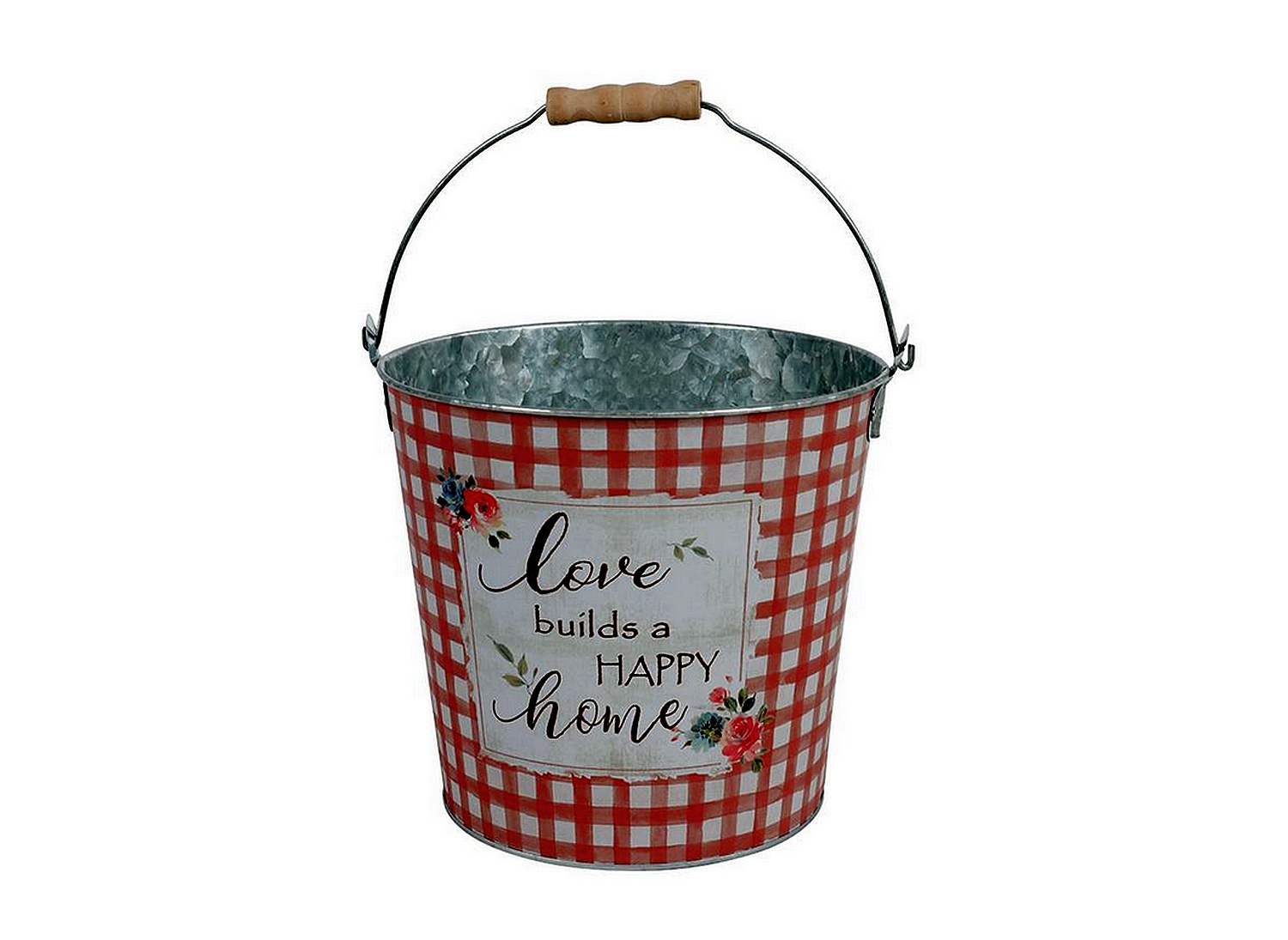 Der wunderschöne Übertopf aus Metall mit einem Holz-Tragegriff versprüht eine frühlingshafte Atmosphäre auf Ihrem Balkon oder in Ihrem Zuhause. Die Metalleimer lässt sich wunderbar mit Blümchen oder Kräutern bepflanzen.