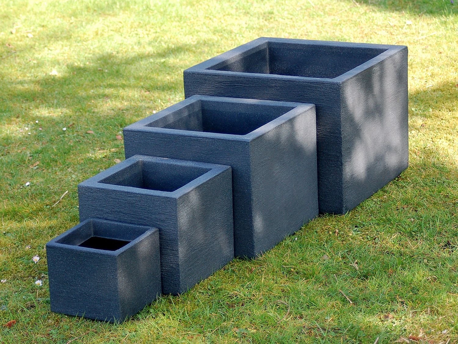 Quadratische Pflanzkübel aus wetterfestem Kunststoff für den Garten, die Terrasse, den Balkon oder auch den Innenbereich. Die moderne Würfelform mit strukturierter Oberfläche macht, kombiniert mit den verschiedensten Blumen und Pflanzen, aus diesen Kübeln ein optisches Highlight.