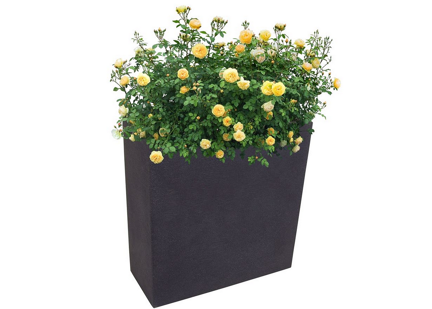 Großer, hoher Pflanzkasten aus wetterfestem, formbeständigem Kunststoff für den Garten, die Terrasse, den Balkon oder auch den Innenbereich. Mit seiner modernen, strukturierten Oberfläche ist er ein tolles optisches Highlight.