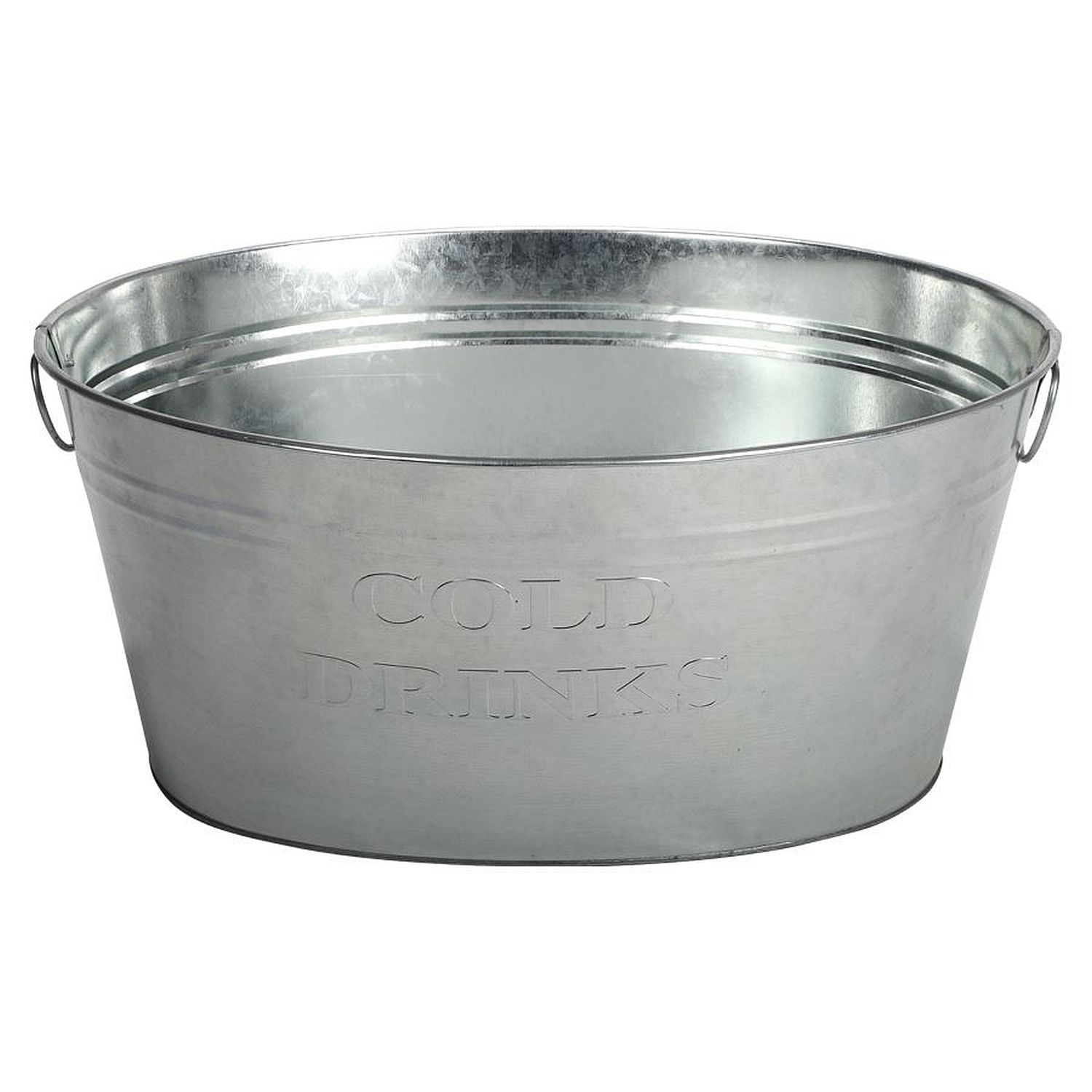 Dekorative Zinkwanne mit 2 einklappbaren Griffen, ca. 24 Liter Fassungsvermögen und dem Schriftzug "Cold Drinks". Die Wanne ist vielseitig verwendbar und kann z.B. auch als Pflanzgefäß genutzt werden.